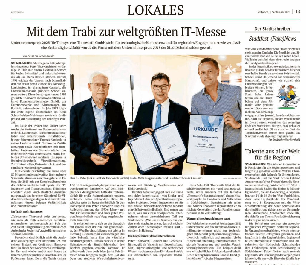 35 Jahre später hat sein Unternehmer über 80 Mitarbeiter. Das verdient einen Preis.